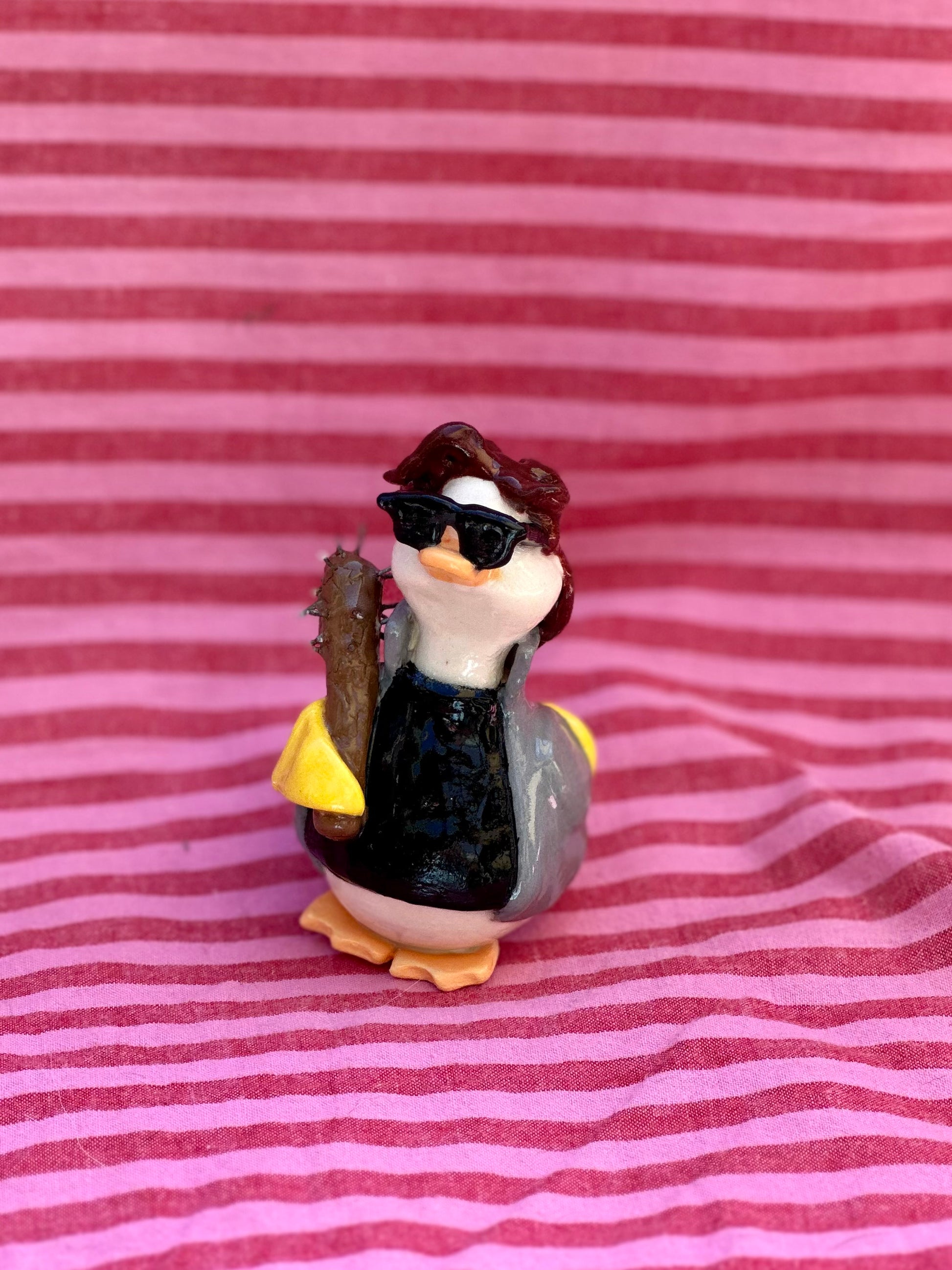 adopt a duck and friends is a fun little collectable ceramic sculptural series of ducks being their silly sweet selves and their animal companions and friends. Each comes with a personality card illustration and is numbered.