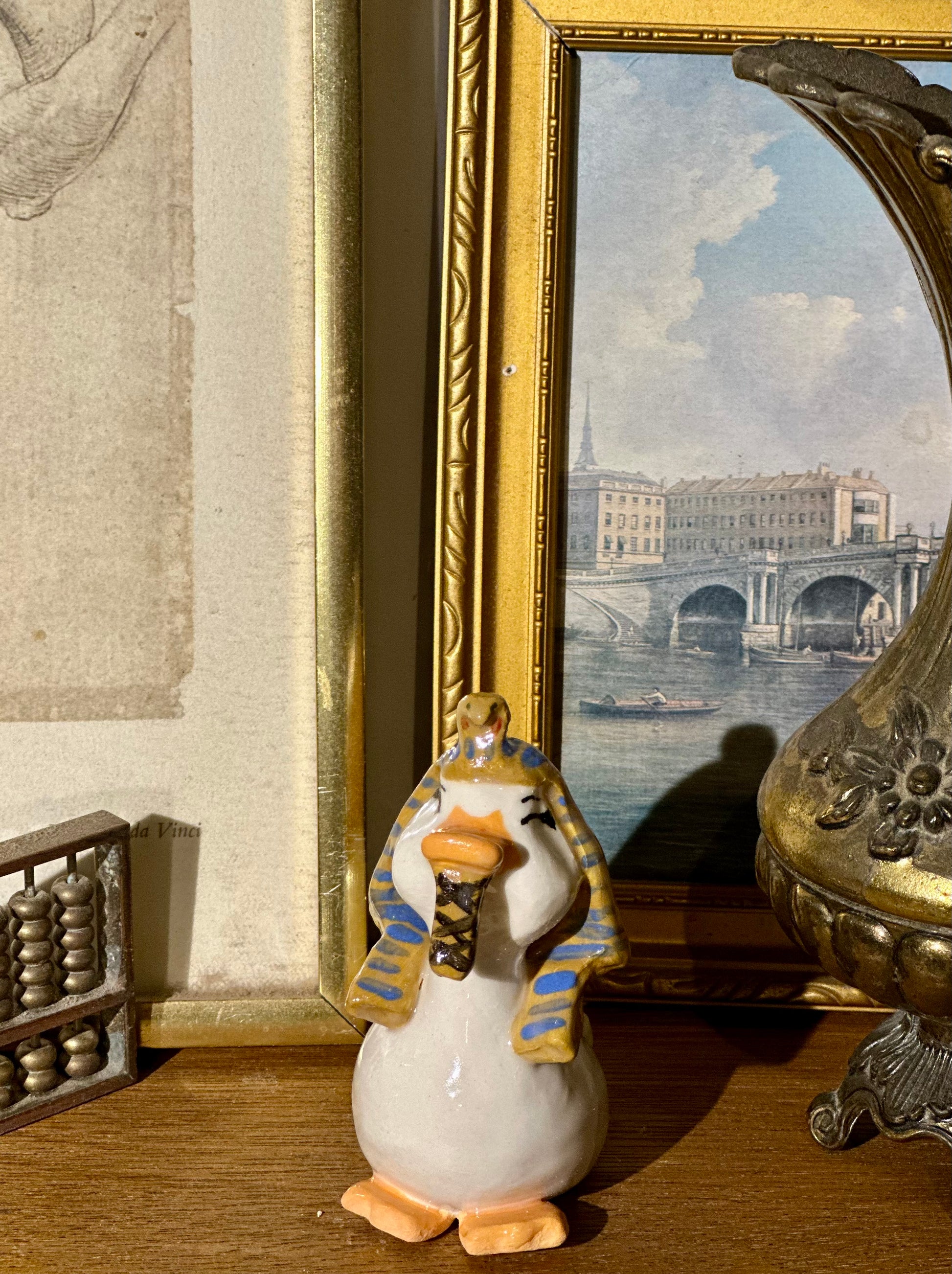 adopt a duck and friends is a fun little collectable ceramic sculptural series of ducks being their silly sweet selves and their animal companions and friends. Each comes with a personality card illustration.