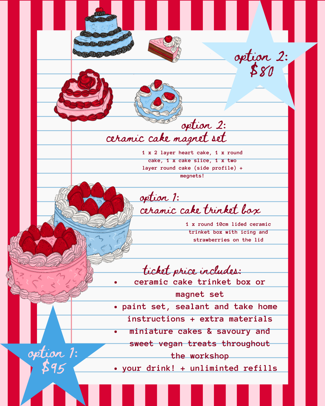 come along to a cake filled workshop at the gator club and paint a vintage cake inspired trinket box or set of magnets. the incredible gator club crew will be taking care of the edible sweet treats, with a fully catered workshop of miniature cakes, sweet and savoury vegan treats and unlimited drink refills (no, that's not a typo). the cozy tucked out of the way courtyard provides the perfect backdrop as the sun sets whilst you get creative with your friends or make new ones if mingling is also part of your craft mission (we make sure we group solo attendees on friendship forming tables).