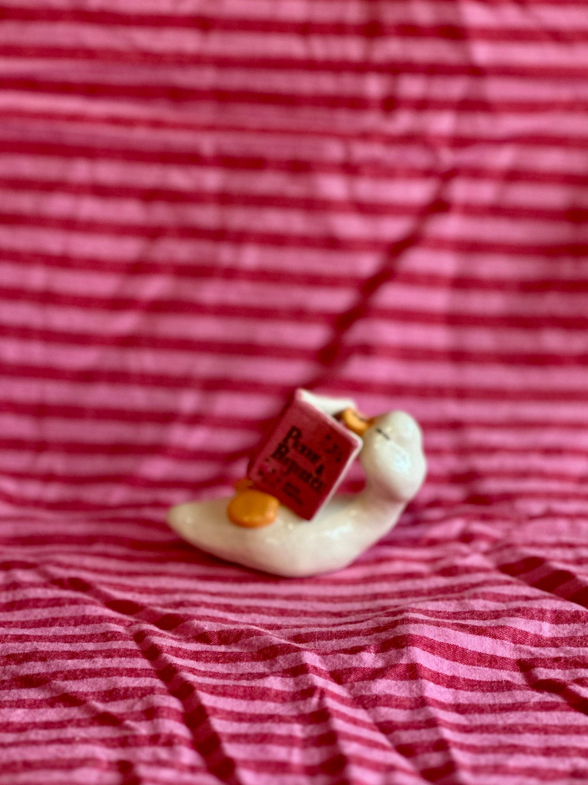 sitting in the studio one afternoon, with a cup of tea and Posh the duck on my lap, stuck in a creative funk for new inspiration I looked at her and then back to the clay on the bench and said "I wonder what would you would look like in clay.." and so the first little love duck was made.