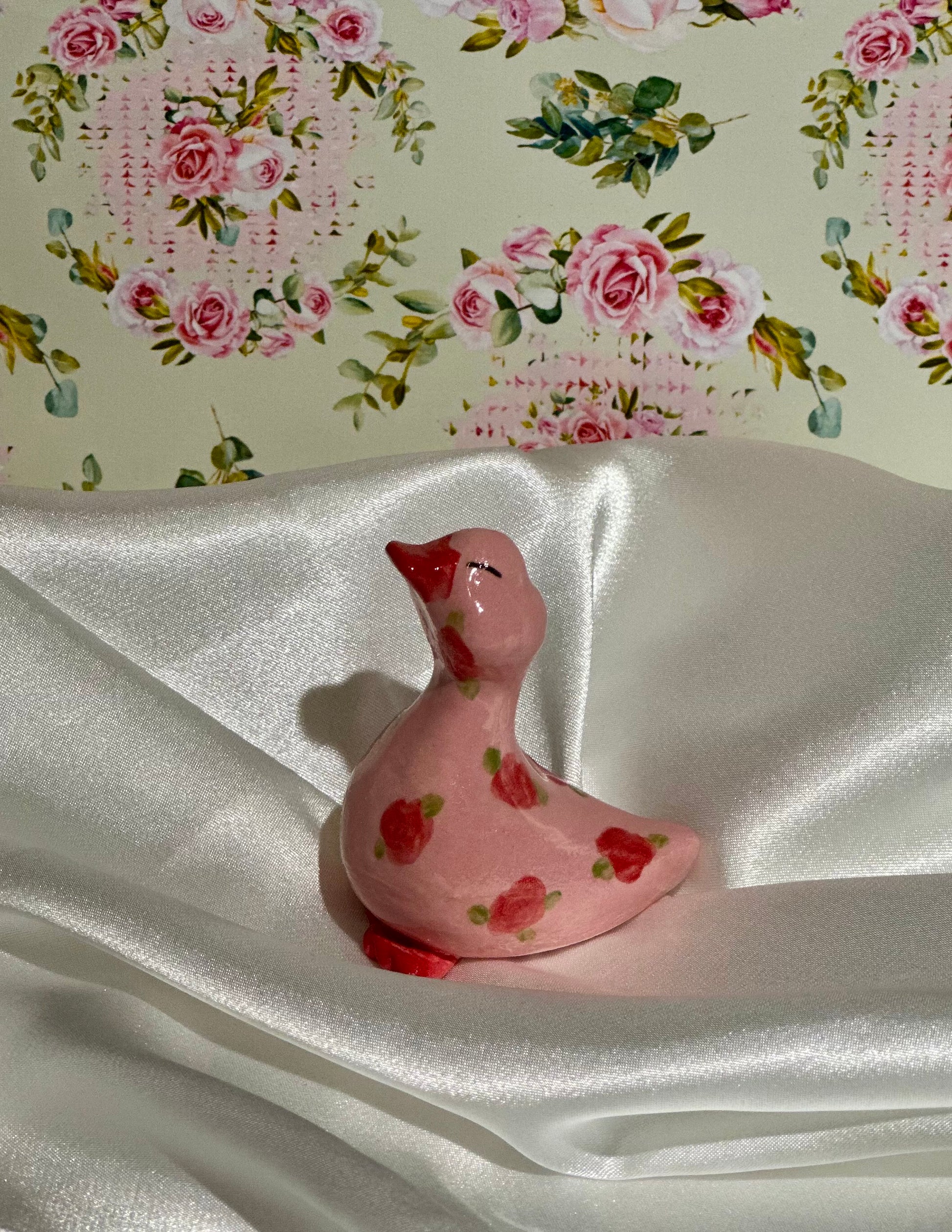 Bring a splash of whimsy to your space with this vintage wallpaper duck sculpture, featuring charming red roses. Its playful design adds a touch of nostalgia and fun to any room, making it a delightful conversation starter or a quirky accent piece. Perfect for those who love unique decor with a vintage twist.